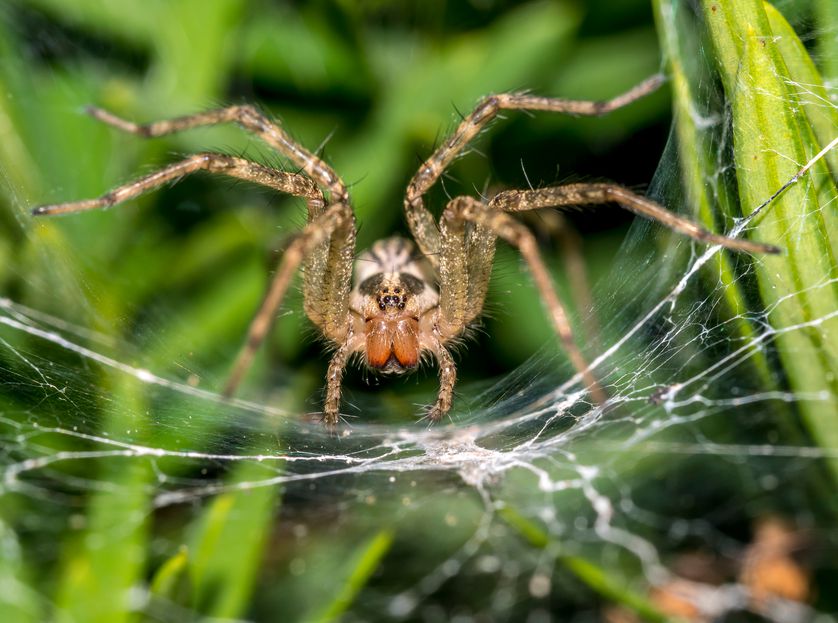 Tegenaria domestica, known as the common house spider or barn funnel weaver, produces silk that inhibits growth in certain kinds of bacteria. (Photo: John A. Anderson/Shutterstock)