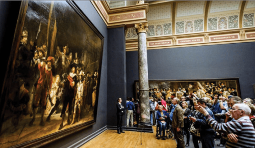 来到国立博物馆,游客将会欣赏在博物馆的200个房间里陈列的数以百万计的艺术作品和历史文物。最有名的是约翰内斯·维梅尔的《挤牛奶的姑娘》和伦勃朗·范·莱因的《守夜人》。除了绘画,这家荷兰的博物馆还展出了多达8000件艺术品,包括版画、绘画、珠宝、茶碗、雕塑……还有1000件河内家具的雕塑,西方雕塑,1000件时尚物品,从怀表,皮带到各种鞋。