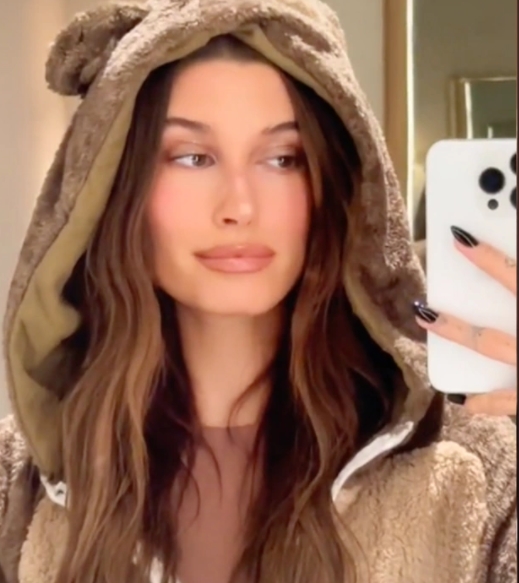 “是时候去买点糖果了,”海莉在炫耀她舒适的服装时写道。