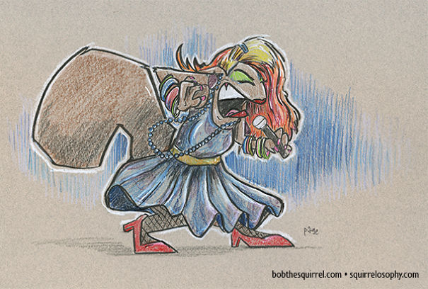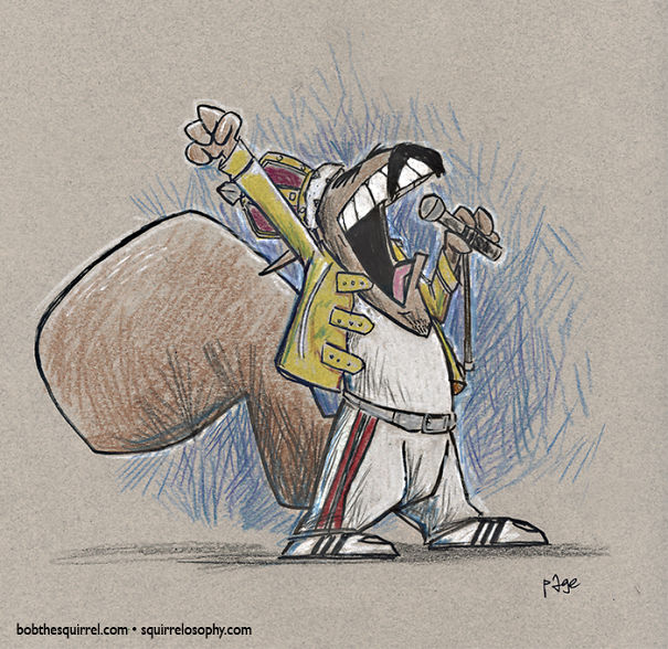 I am a cartoonist Frank Page and I have a thing for squirrels - I've been drawing the daily comic strip Bob the Squirrel for over 17 years. Spending that much time with a talking squirrel constantly in my head did something to me. That's why I thought: "What would some of my famous musicians look like if they were squirrels like Bob?".